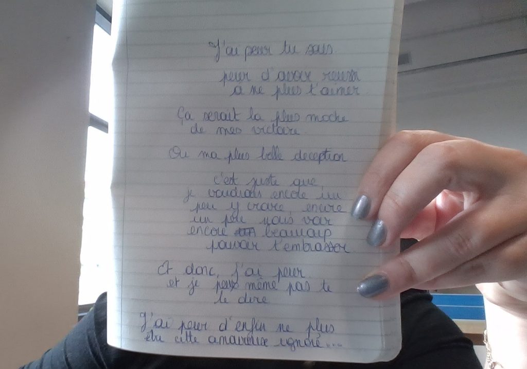 Quand un stylo-bic s’emballe et prend possession de vous pour un début de lettre de rupture, ça donne un visage caché par les M A U X et la beauté d’une hypothétique guérison d’un amour non-partagé.